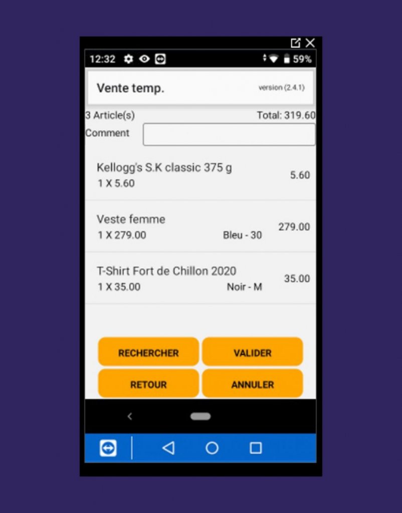 Une fois de retour à la caisse, il suffit de transférer la saisie sur la caisse dans un ticket en attente.